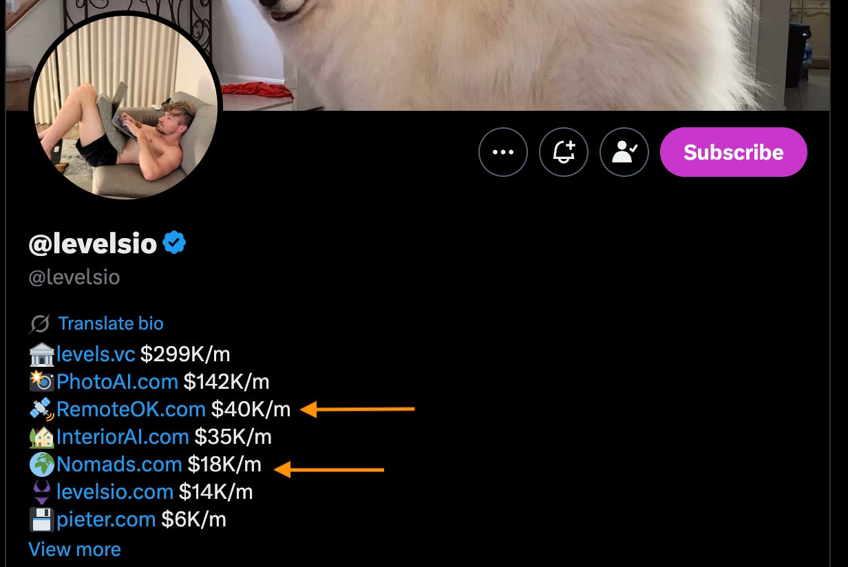 It's fascinating to see those numbers go down significantly. I'm curious about the reasons behind this. Are there socioeconomic factors at play? Is it that Gen Z is less interested in being a part of Nomad List and Millennials are now settled? Meanwhile, Peter is making $40,000 a month from RemoteOK. This is nuts considering I thought remote work was dead here in the US. I repeat, he's making half a million dollars a year from a remote job board.