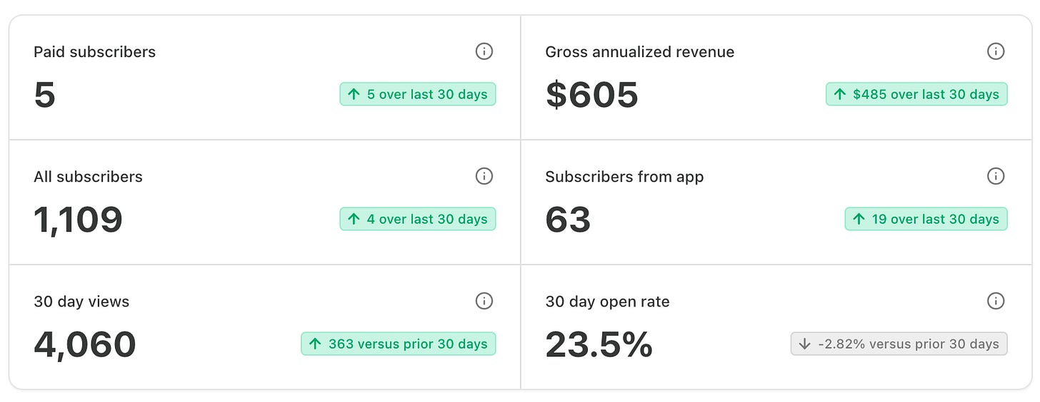 We announced paid subscriptions last week, and I’m stoked that we immediately got some contributors. I know most writers would be devastated to see only 5 paid subscribers, but people don’t just give you money because you’re a good person or have a good idea.