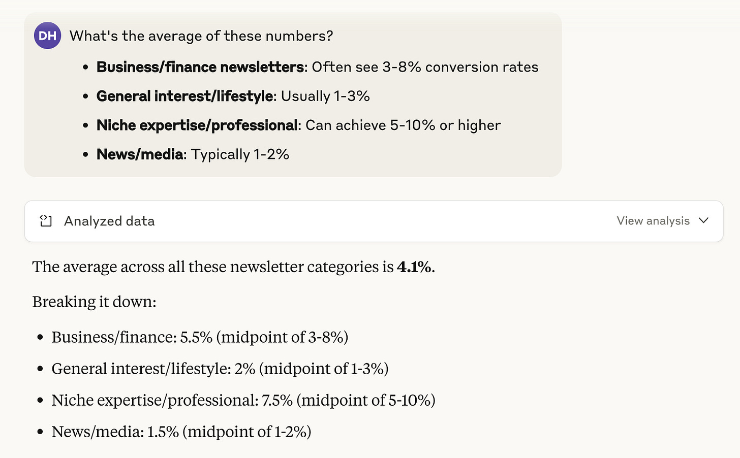 Alright, so let’s say I should be able to convert 4% of the 260 active subscribers. That’s 10 paid subscriptions, and we’re halfway there.